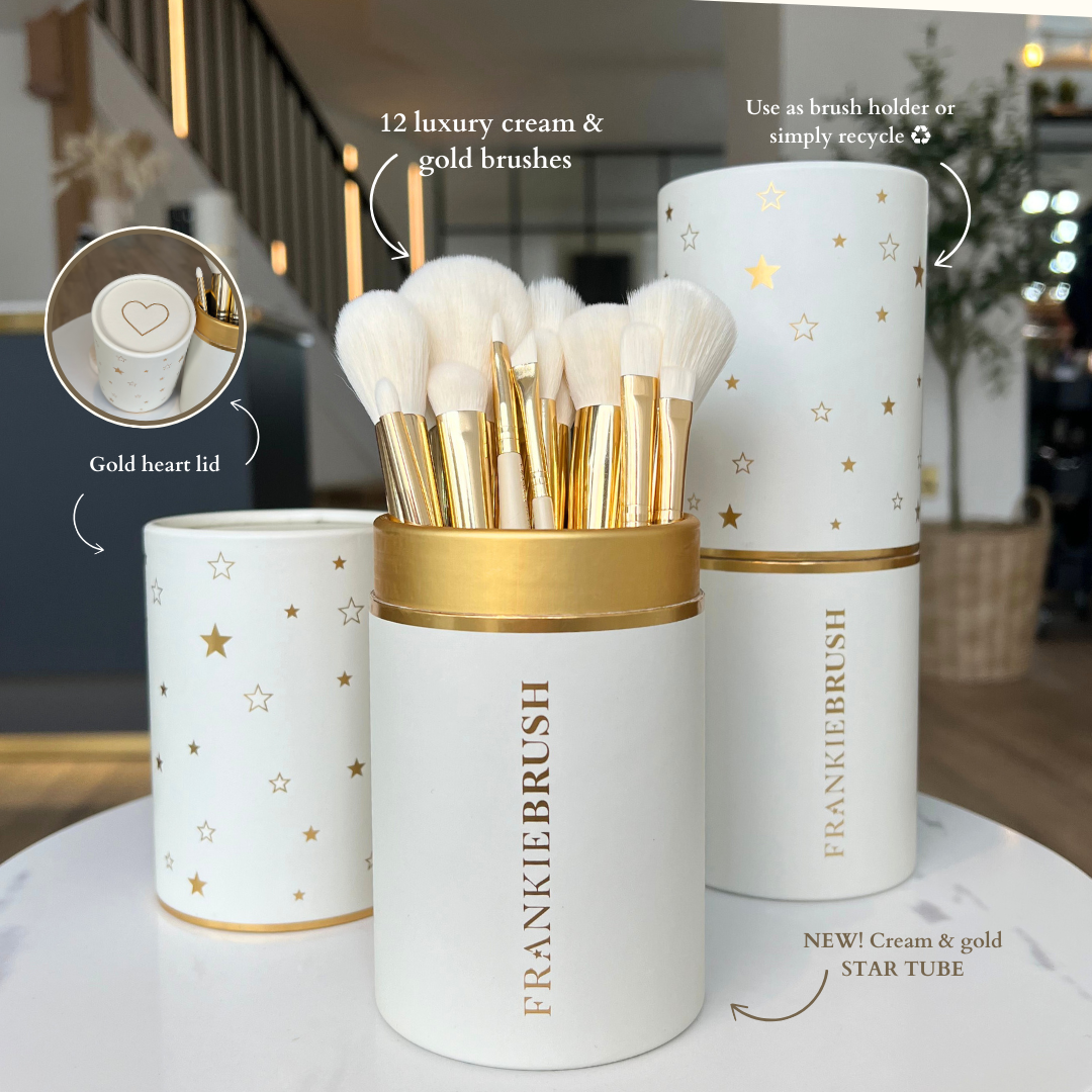12 of our luxury cream and gold brushes, the cream & gold star tube & packaged in our stunning falling stars gift box 🤩